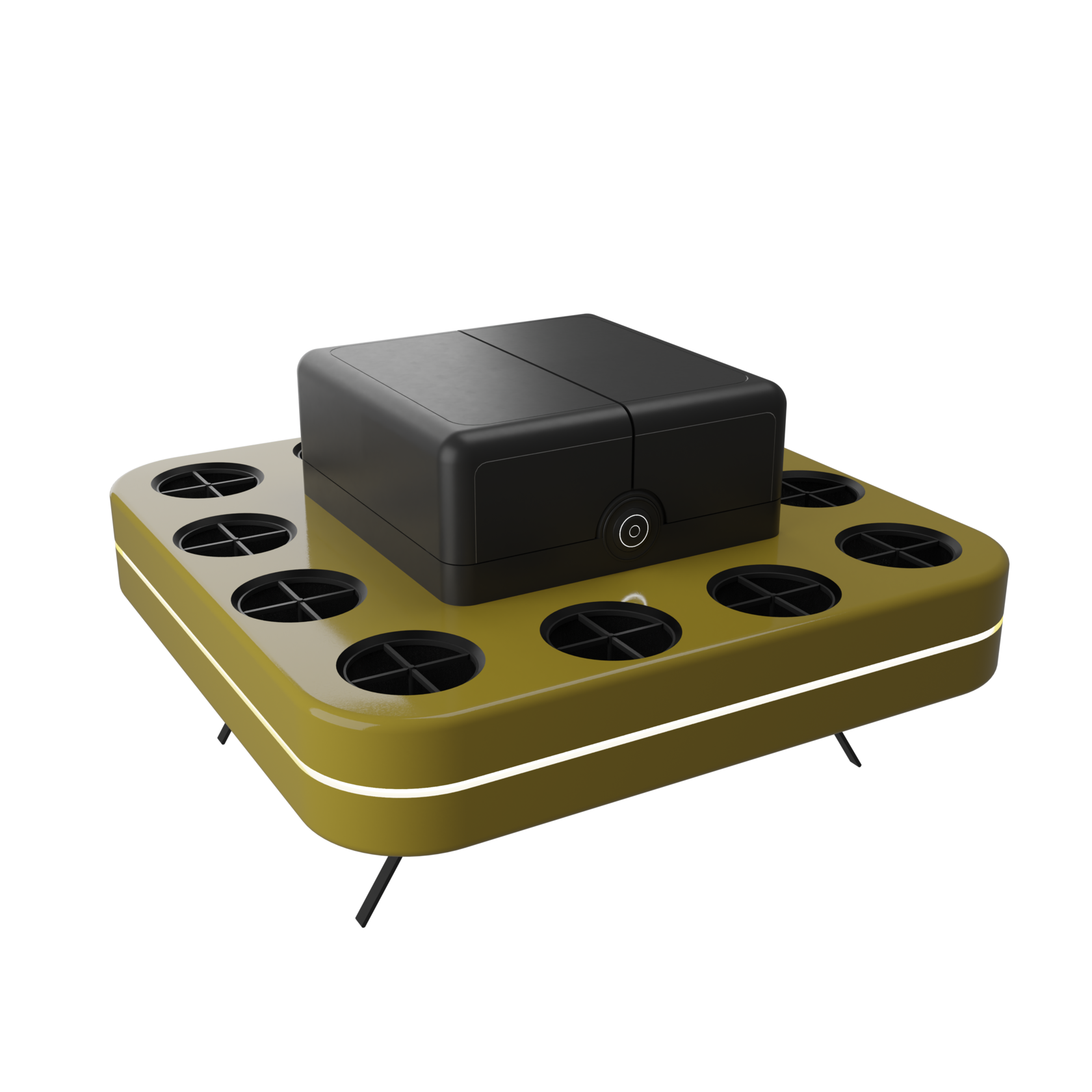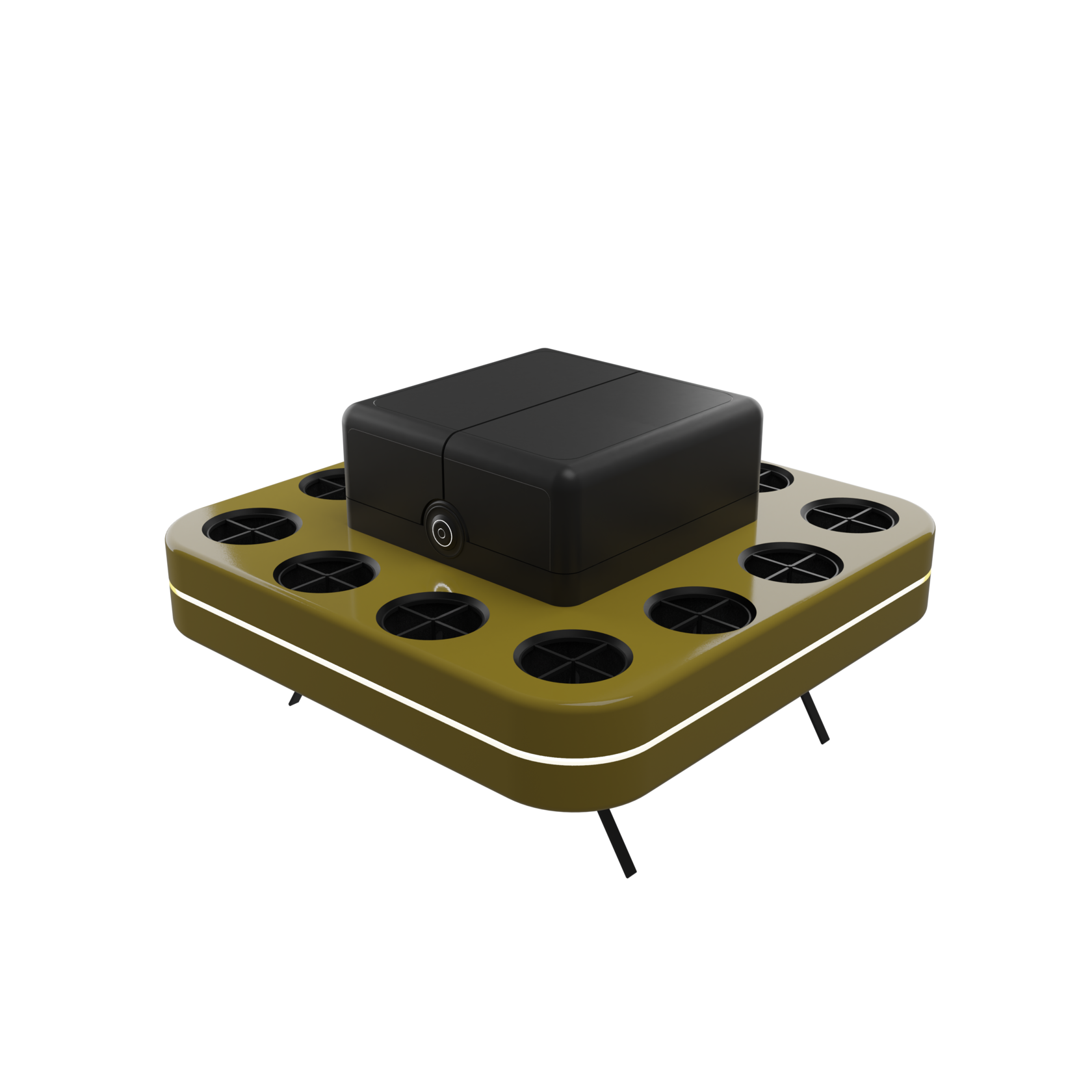 Блок управления представляет собой герметичный отсек с центральной платой, на которую подключаются раздельно: полетный контроллер - 1 шт., плата распределения питания - 1 шт., регуляторы моторов - 12 шт. (может быть любое количество от 8 до 32), микрокомпьютер - 1 шт., модуль 4G/LTE связи, модуль GPS/GLONAS/GNSS - 1 шт.